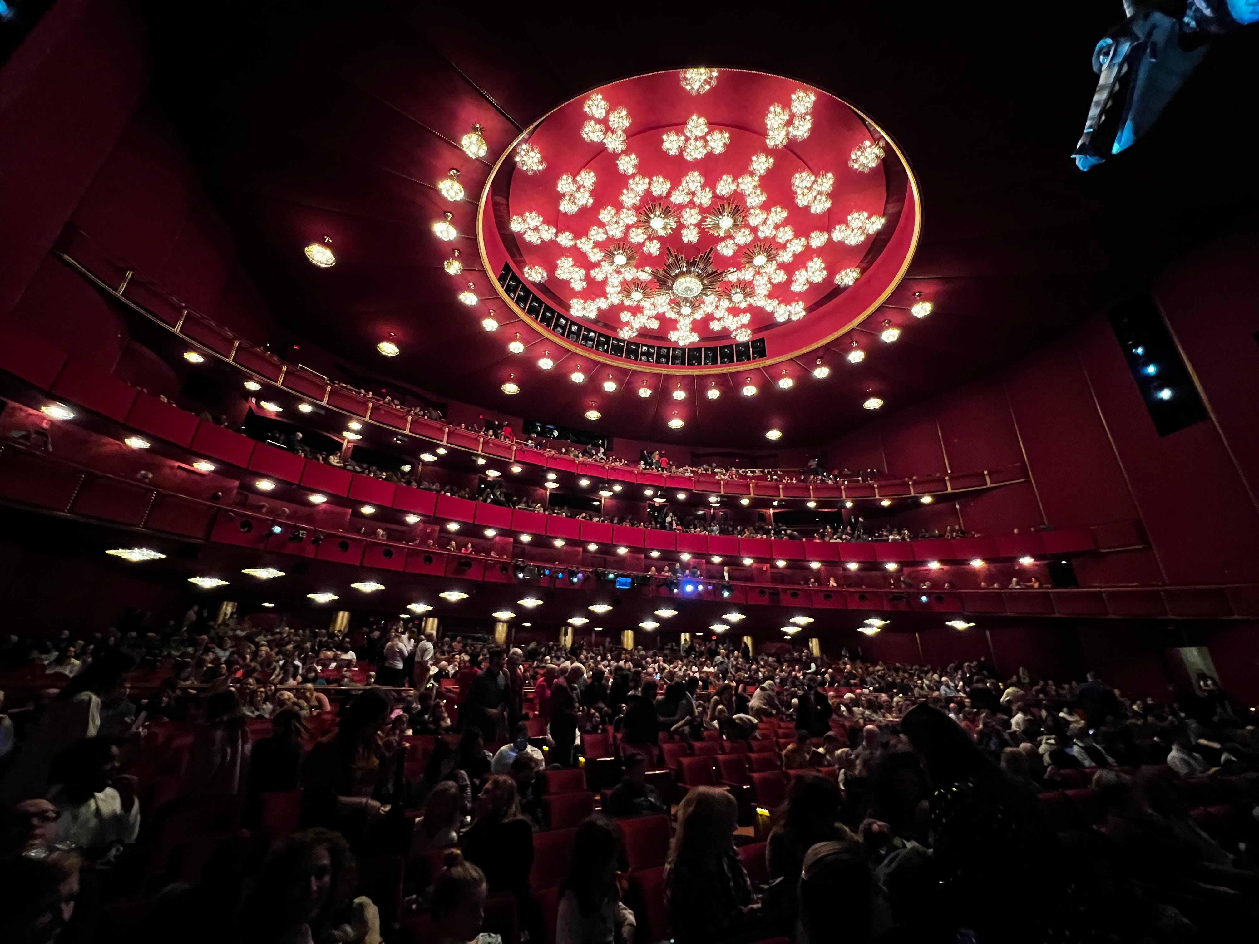 Before we get to business, though, perhaps we could just spend a moment looking around: up into the glittering constellation of chandeliers; around at all the pretty red velvet and brass; outward at the silent stage. What a strange and holy thing an empty theater is—particularly one like this. Where else on Earth could silence feel so full? Where else could our ghosts stand so close that we can almost feel their breath?