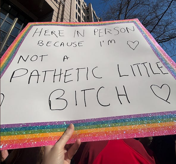 And that’s how I ended up standing next to Jess at the rally minutes later, holding this sign: